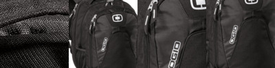 - 600D poly/420D dobby polyFlapover construction with double lock closure Interior padded laptop compartment Padded tablet/e-reader sleeve Easy access zippered pockets for business essentials Dual side beverage/accessory holsters Adjustable and padded shoulder strap Top handleLaptop sleeve: 11"h x 16"w x 1.5"d