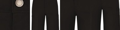- Two button-through flapped pockets with angled bartacks and sewn-down pencil stall on left pocket