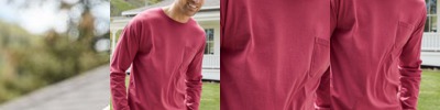- ComfortWash tees and sweats deliver garment dyed tones with a vintage washed softness.