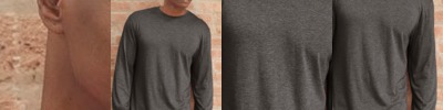 - 8 oz./yd² (US), 13.4 oz/L yd (CA), 52/48 Airlume combed and ring-spun cotton/polyester, 32 singles