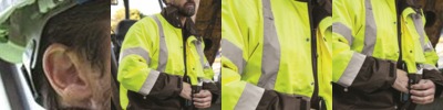 - Removable zip up hooded sweatshirt with two slash pockets and reflective bands on left arm