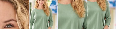 - Scuba neckline with self-fabric drawcords