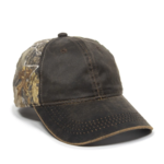 Low Crown ,Solid Back,Weathered Cotton Twill Front Panels,Canvas Camo Back Panels,Pre-Curved Visor,Unstructured,Hook/Loop Tape Closure