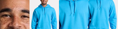 - Scuba shaped three-piece hood with color-contrast lining