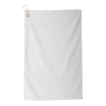 Carmel Towels 16x25" Golf Towel. 100% cotton velour with dobby hemmed edges. 2.3lbs, silver corner grommet with hook.