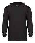 Badger Youth Hooded Long Sleeve Shirt. 100% Polyester moisture management/antimicrobial fabric. Badger sport shoulder for maximum movement. Self-fabric hood. Badger heat seal logo on left sleeve